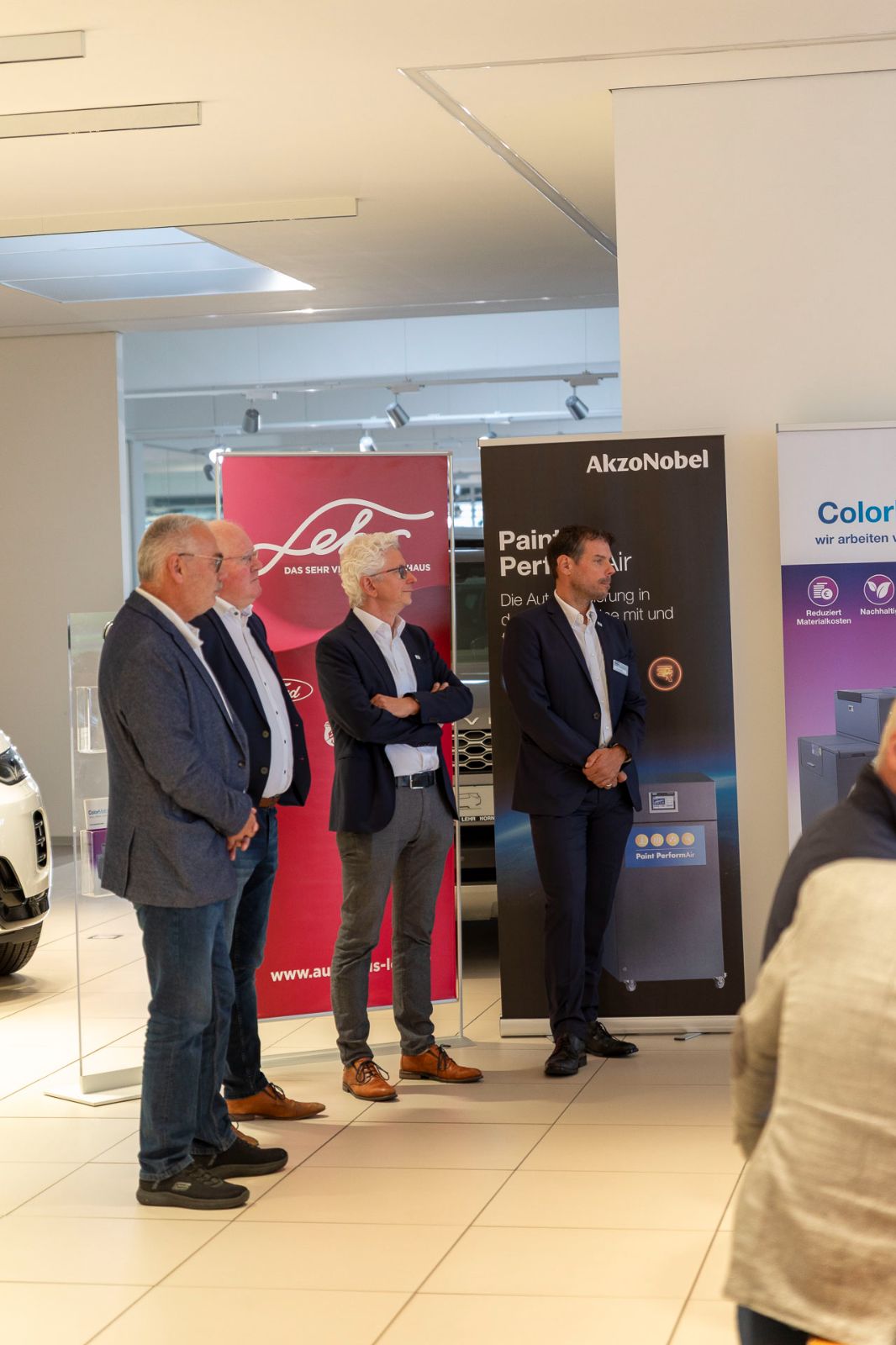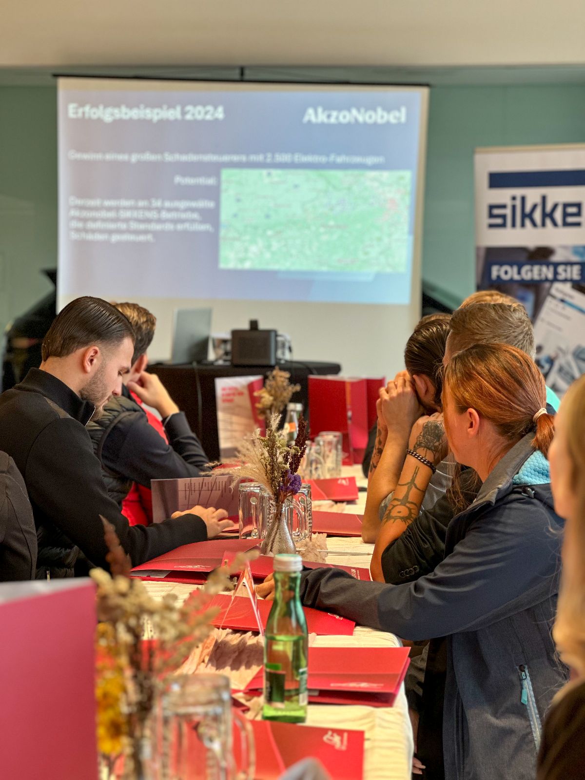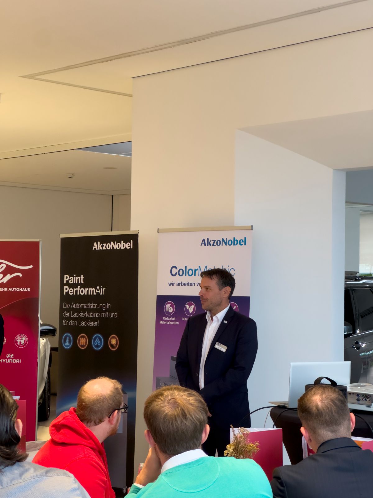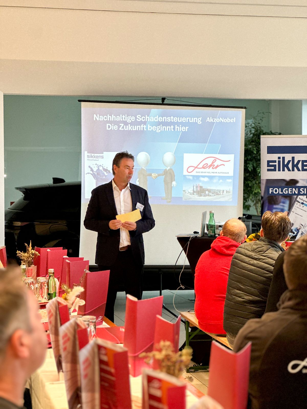 Im Anschluss hielten Daniel Kapeller und Matthias Schramm von unserem Lacklieferanten AkzoNobel einen ausführlichen Vortrag zum Thema „Nachhaltigkeit und Effizienz in der Schadensteuerung“.